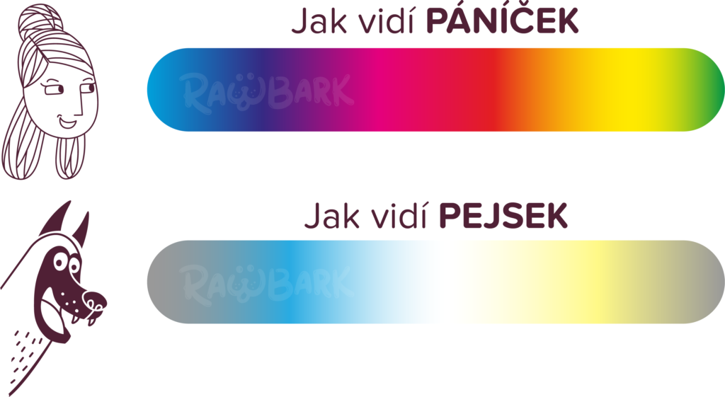 Dlouhá léta se předpokládalo, že psi vidí svět pouze jako starou černobílou fotografii. Různé vědecké studie za použití elektronového mikroskopu ukázaly, že psi stejně jako my, vnímají barvy, ovšem ve velmi omezeném spektru. Jejich vidění lze přirovnat k lidem trpících zvláštním druhem barvosleposti – neumí rozlišit zelenou a červenou barvu, tato schopnost je oslabena. V jejich vnímaném světě převládají různé odstíny modré, žluté a šedé. Z tohoto pohledu odborníci doporučují pořídit pejskovi hračky v modré nebo fialové barvě, ty pak snadno rozpoznají na zeleném trávníku.