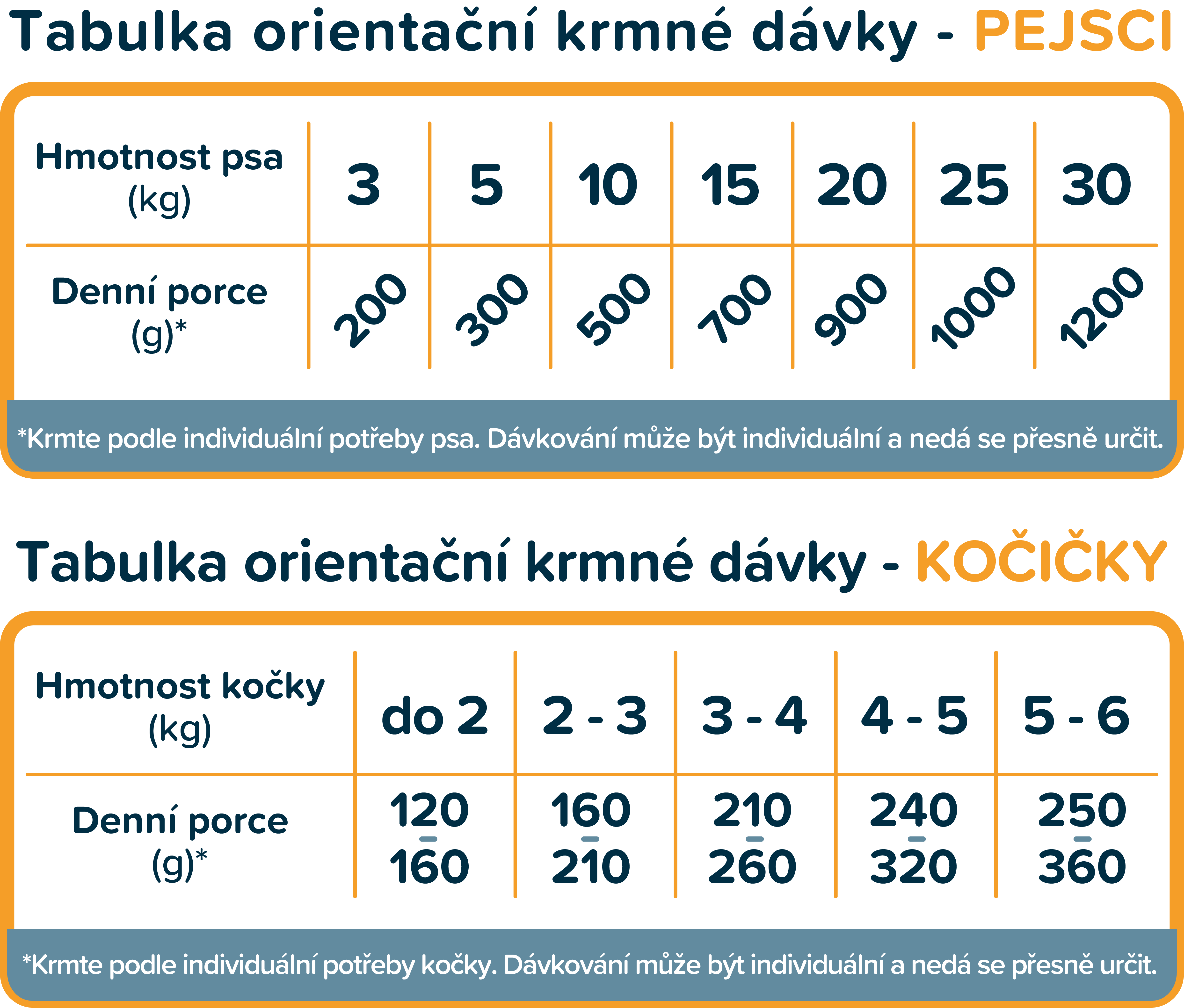 DÁVKOVÁNÍ: Dávkování krmiva je uvedeno v orientačních tabulkách níže. Zajistěte přístup k dostatku pitné vody. Podávejte při pokojové teplotě.