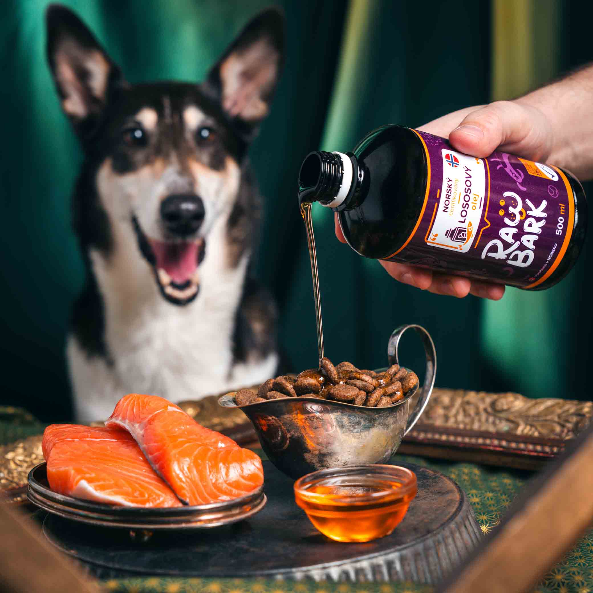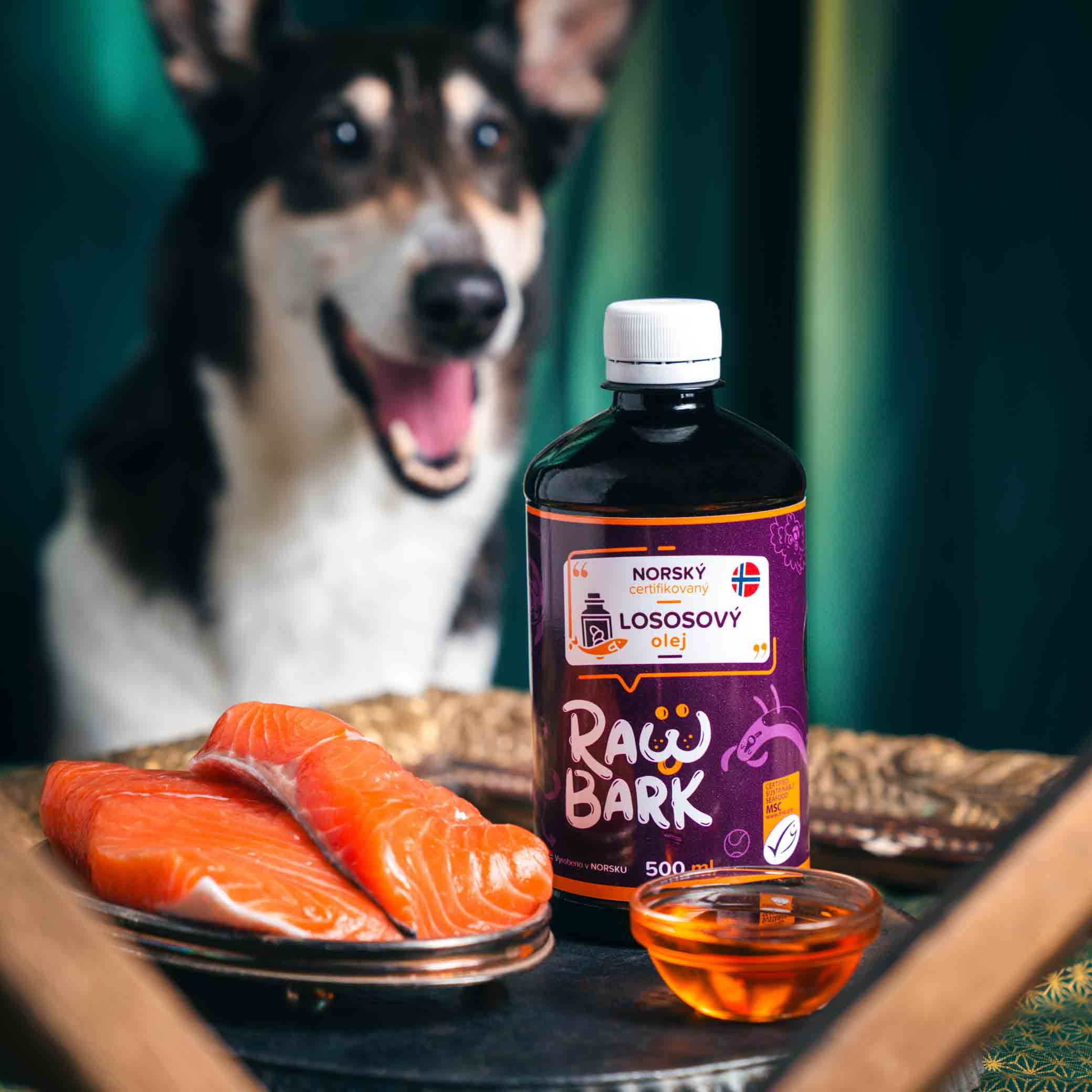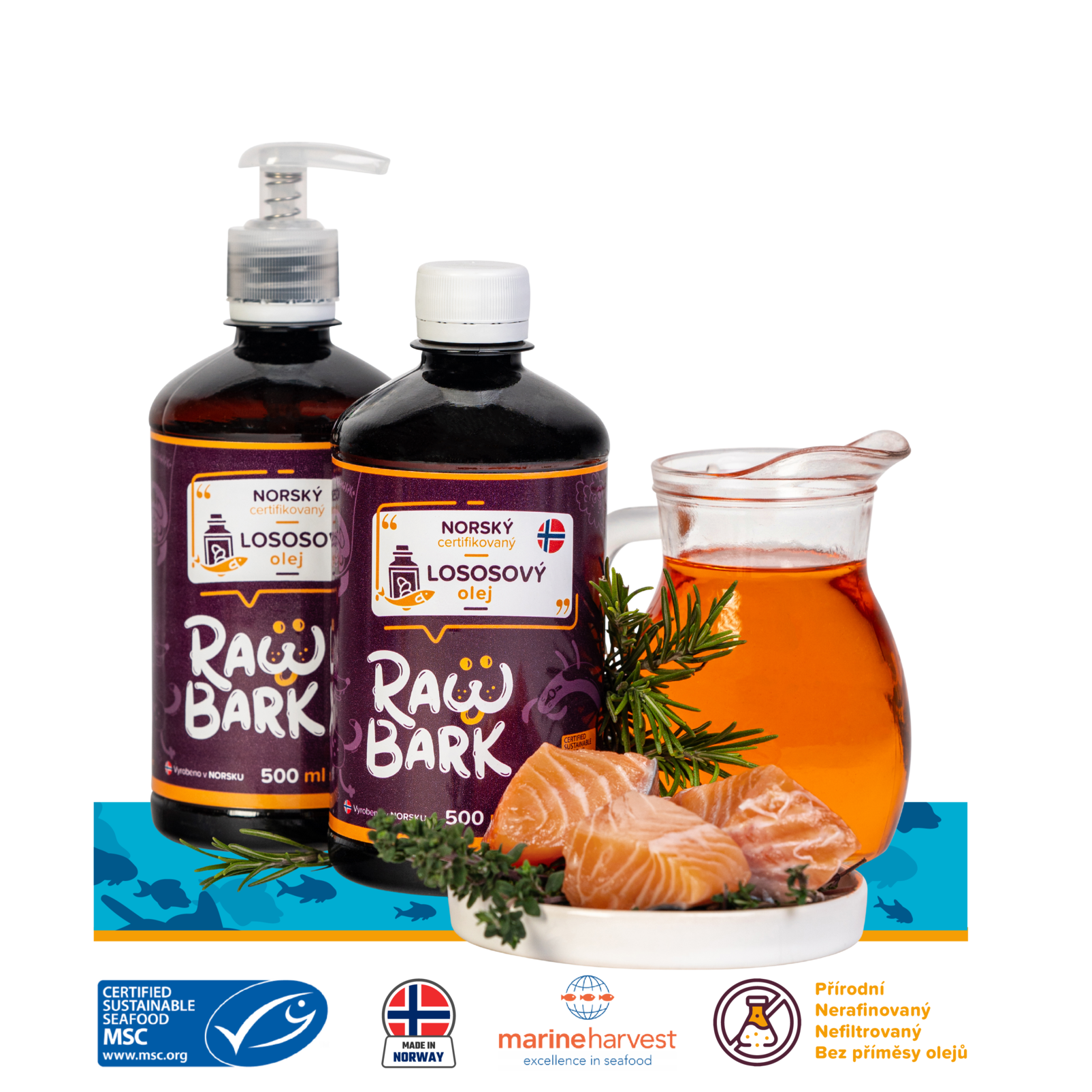 Norský, certifikovaný, za studena lisovaný, přírodní, nerafinovaný, nefiltrovaný lososový olej pro psy (bez příměsí jiných druhů rybích olejů). Jedná se o vynikající zdroj energie a nenasycených mastných kyselin omega 3 + omega 6, které jsou důležité pro krásnou kůži a srst. Lososový olej se podílí na snižování cholesterolu v krvi, má protizánětlivé účinky, chrání srdce, podporuje rekonvalescenci, dobrý zrak a pomáhá se vstřebáváním vitamínů rozpustných v tucích A,D,E,K. Olej je vhodný jako doplněk stravy i jako součást příloh B.A.R.F.